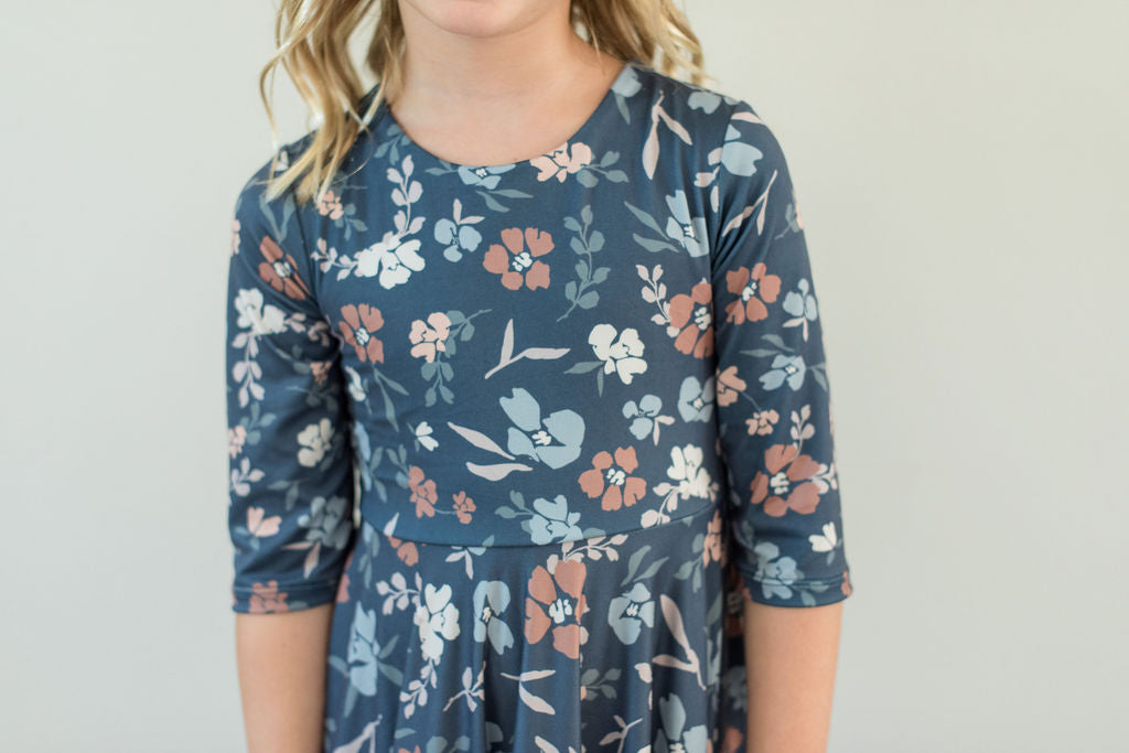 Gray Fall Floral Twirl Dress