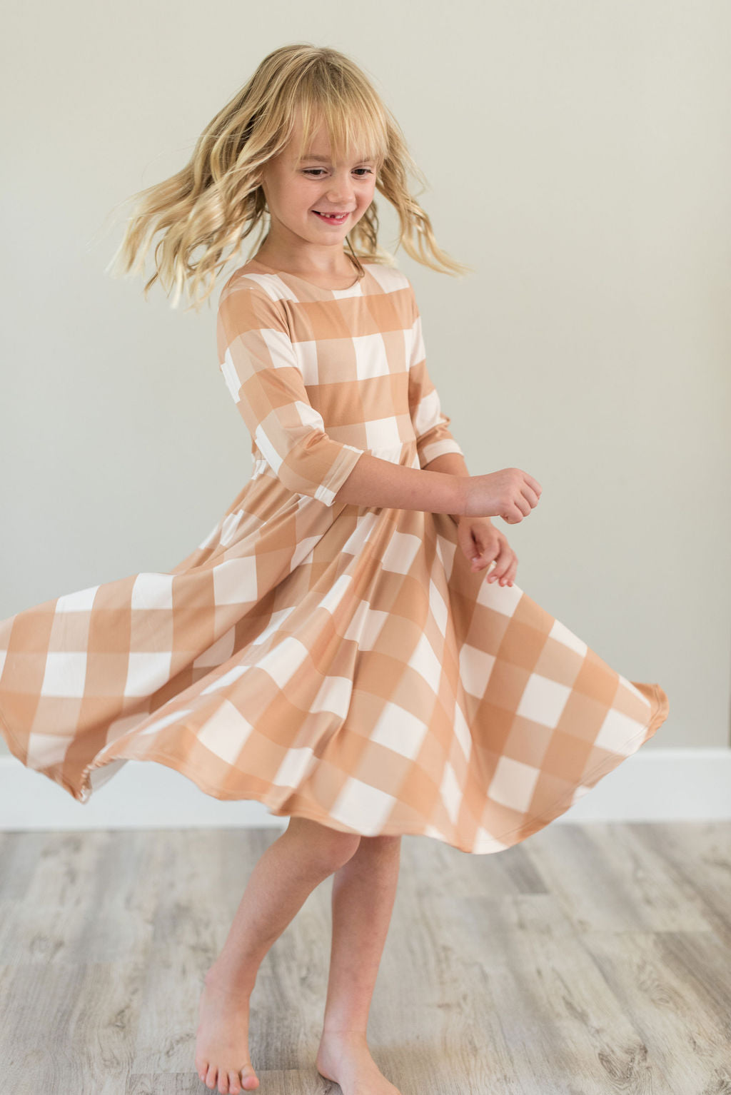 Beige Plaid Twirl Dress